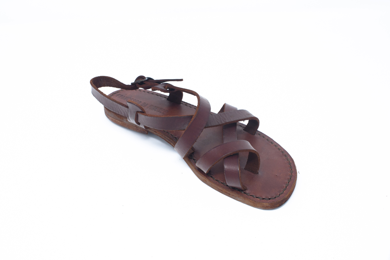 FdaF mod. 117 MARRONE Sandalo infradito in pelle e cuoio incrociato con fibbia