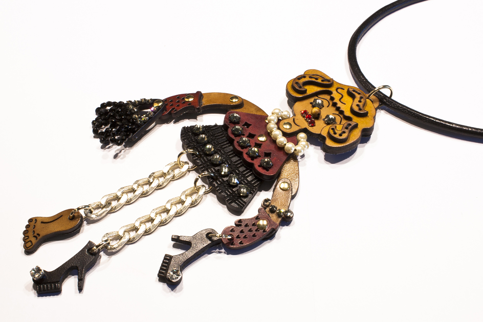 art_004_bambola_ciondolo2 Ciondolo motivo bambola in cuoio colorato, lavorazione laser in 3d, con swarovski colorati, perle, catene. Mi piace Caricamento...